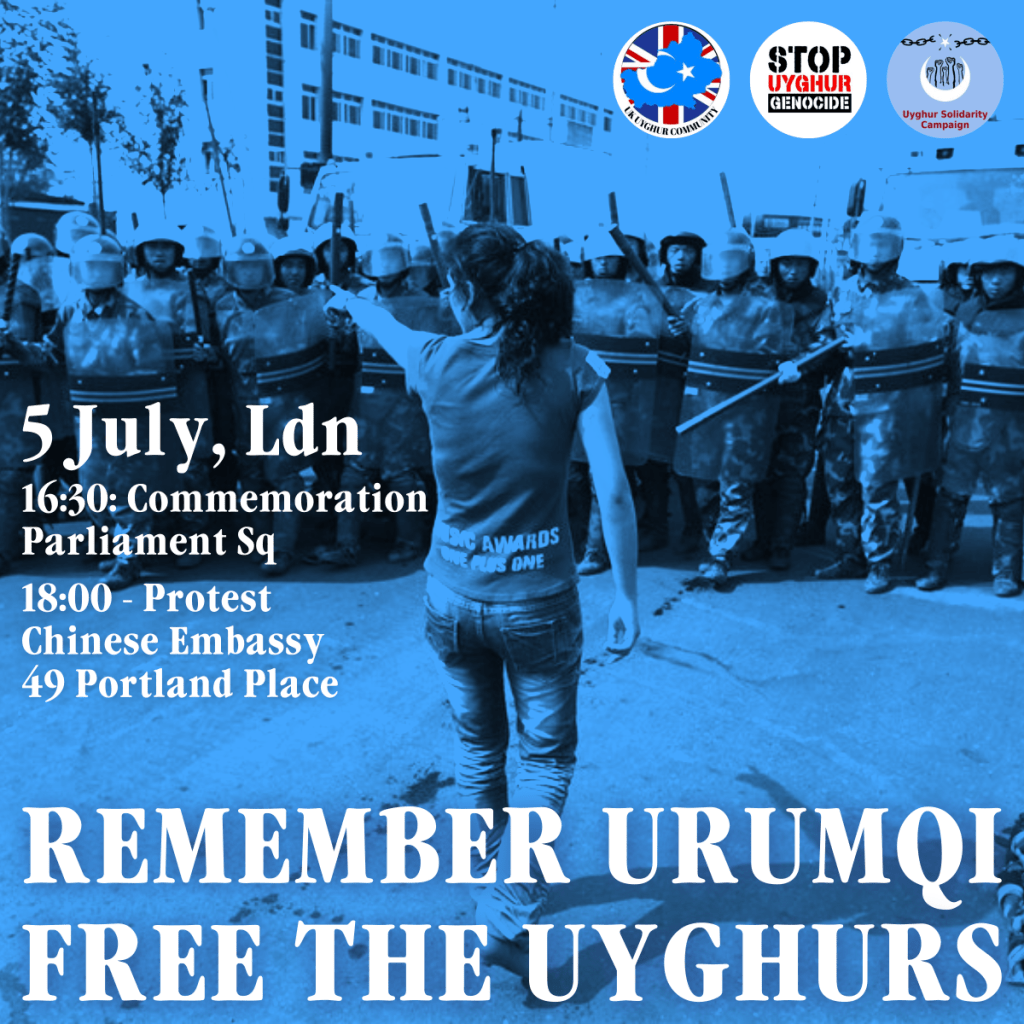 Our protest will remember the events of July 2009 and demand freedom and self-determination for the Uyghur people and other indigenous peoples of the region – and safe haven for refugees fleeing the terror.